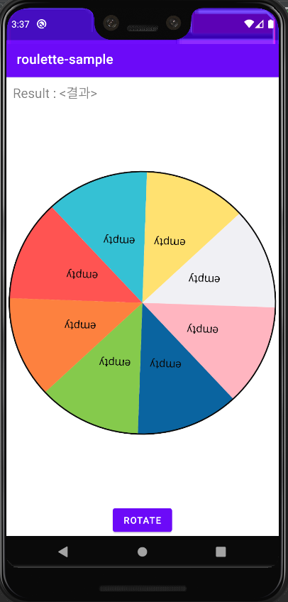 - onRotateEnd(String) : 애니메이션이 종료되면 결과를 전달받아 출력해줍니다.