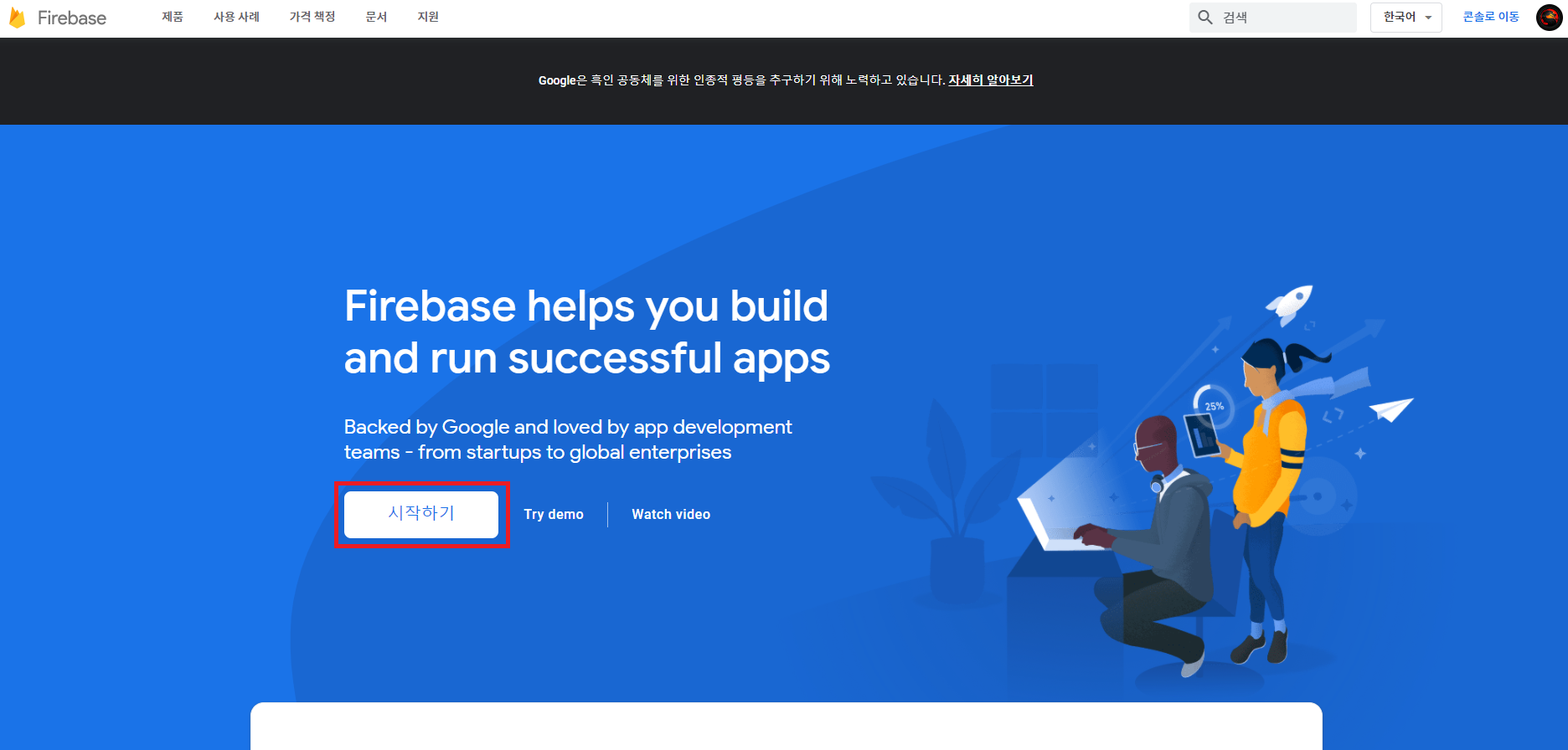 - Firebase 접속 : firebase.google.com/?hl=ko