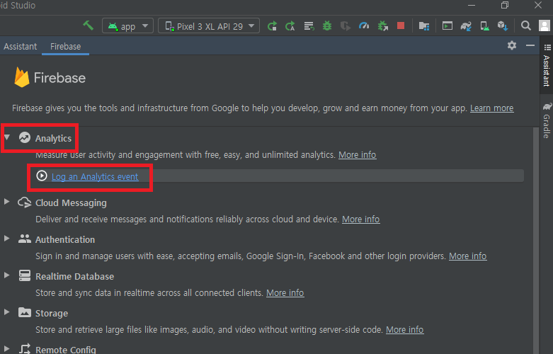 implementation 'com.google.firebase:firebase-analytics-ktx' //Java 프로젝트는 '-ktx 제거