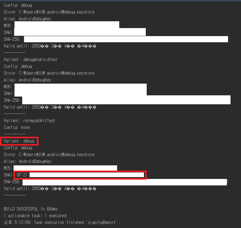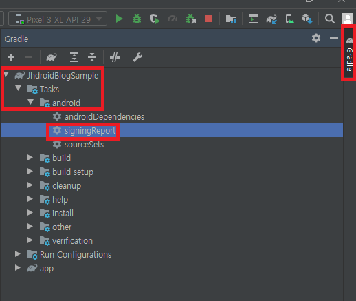 - 프로젝트명 - Tasks - android - signingReport 더블클릭